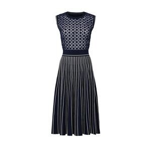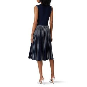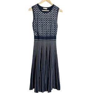 Tory Burch Navy Blue Sleeveless Pleated Knit Crewneck Midi Sweater Dress Size XS