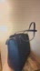 It is a large, well-structured tote with double handles and a gold-toned logo and hardware. It is designed to be scratch-resistant and functional. This nice blue tote bag is perfect for any occasion. Its sleek design and versatile color make it a must-have accessory.