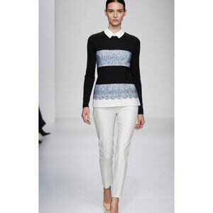 Tory Burch Navy Blue Wool Contrast Paneled Collared Sweater L