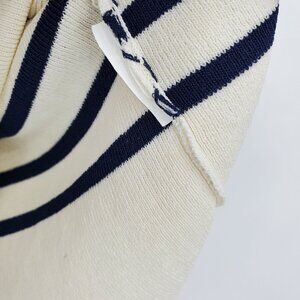 Tory Burch Navy Blue and White Striped Red Button Pearl Neck Sweater Medium