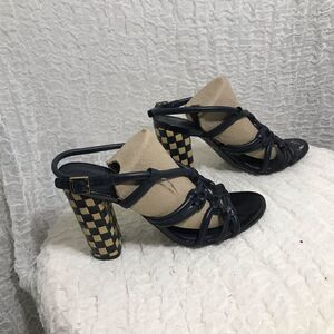 Tory Burch Navy Checkered Heeled Leather Sandals Size 9M