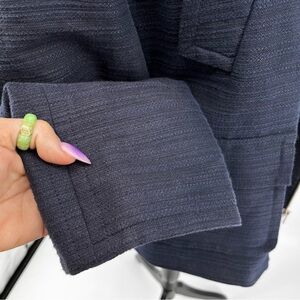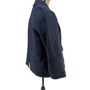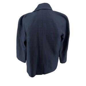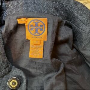 Tory Burch Navy Cotton Linen Blend Full Zip Jacket Blazer Textured Snap Button