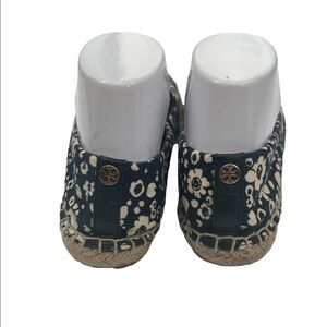Tory Burch Navy Ivory Risa Lovers Floral Espadrille Flats Size 7.5 Women’s