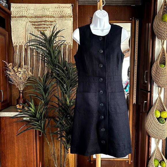 Tory Burch Navy Linen Button Front Dress 6 | Sleeveless Shift Preppy Resort Chic