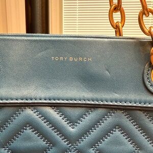 Chic quilted design. Elegant navy tone. Included an interior pocket. Gold chain accents. Perfect for any occasion. Some limited wear on the bottom left and right corners front and back. Otherwise in excellent condition.