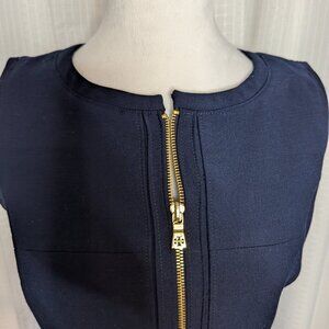 Tory Burch Navy Sheath Dress with Gold Accents, Size 2