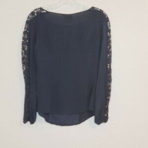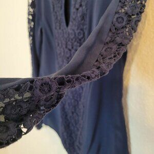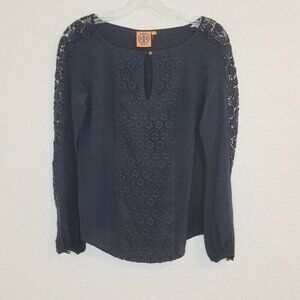 Tory Burch Navy Silk Crochet Long Sleeve Blouse Size 2