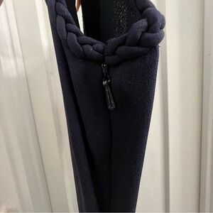 Tory Burch Navy Silk Midi Dress with Scoop Neck and Braided Trim, size 2