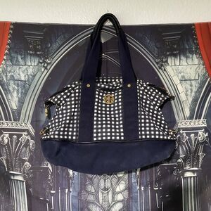Tory Burch Navy & White Checker Pattern Vintage Shoulder Bag Preppy Y2K