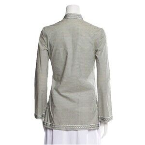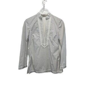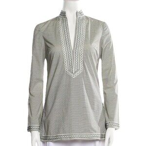 Tory Burch V Neck Tunic Top Womens Size 0 Skinny Striped Embroidered Designer Blouse