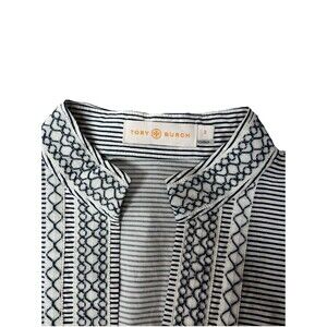 Tory Burch Navy White Tunic Sz 0 Embroidered Striped Side Zip Coastal Style