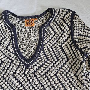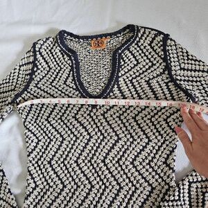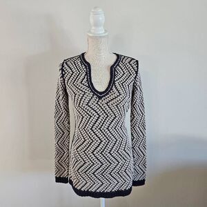 Tory Burch Navy and Beige Tunic Sweater Size Small
