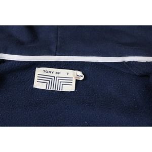 Stylish navy hoodie with bold white stripes. Features a comfortable fit and classic design. Perfect for casual wear.