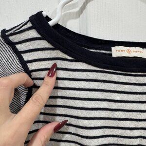 Tory Burch Navy and white striped sweater with elbow patches size Small S
