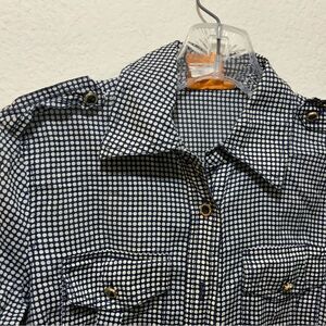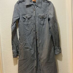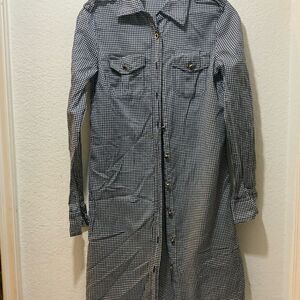 Tory Burch Navy and White Polka Dot Button Down Long Sleeve Shirt Dress Small 0