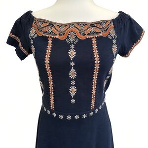 Tory Burch Navy Embroidered Dress – XS – Cotton Off Shoulder Boho Style – Worn Once
