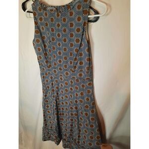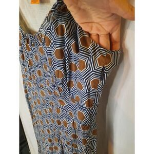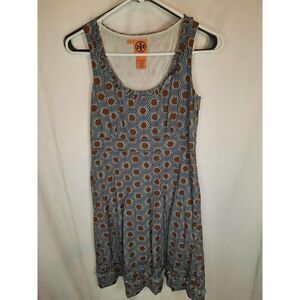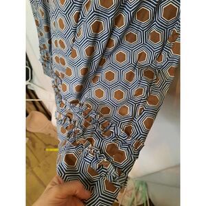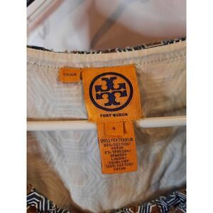 Tory Burch Neutral Geometric Patterned Navy Brown Midi Dress Fit and Flare