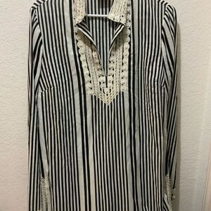 Tory Burch Newell stripe beaded Tunic Embroidered size 10
