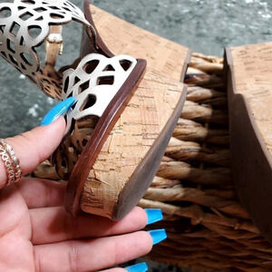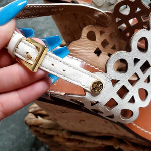 Tory Burch Nori Laser-Cut 115MM Wedge Sandal in Ivory