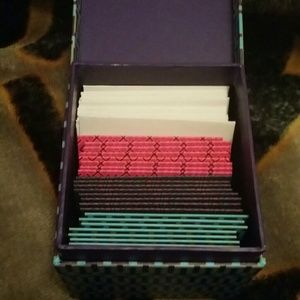 One brand new box of Tory Burch Note Card Set - 24 Turquoise/Purple/Pink Multi Assorted ( 8 of each design with envelopes) I got it as a gift so no tags! Great way to invite girls to any ocassion!