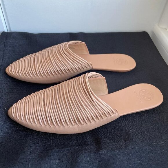 Tory Burch Nude Woven Leather Mule Flats Size 8 | Pointed Toe | Women’s