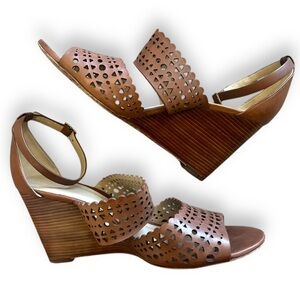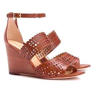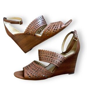 Tory Burch Nutria Perforated Gladiator Ankle Wrap Wedge Sandal
