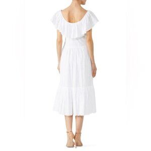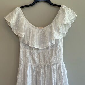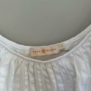 Tory Burch Off Shoulder White Cotton Seersucker Striped Ruffle Dress, size 2