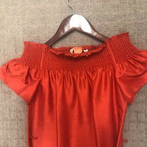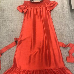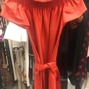 Tory Burch silk dress. Off the shoulder with a flounce bottom. Tie with belt! Great shape. Size xs. mid length.