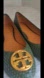 Elegant olive flats with a woven texture. Features a signature gold emblem for a stylish touch.