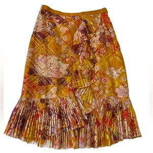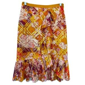 Like new Tory Burch Opalina Silk Floral Print Ruffle Midi Skirt in Golden Yellow