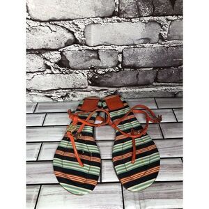 Tory Burch Orange Blue Patent Leather Thong Strap Sandals Women Sz 6M US/36.5EU