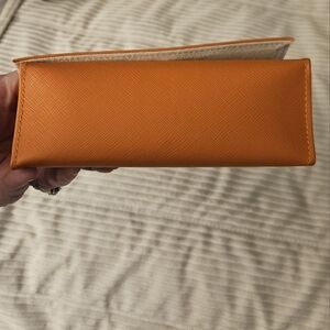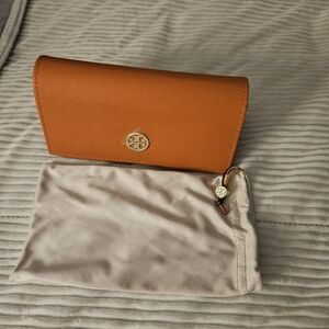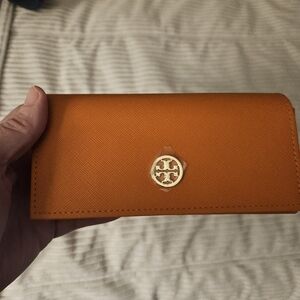 Tory Burch Orange Eye Glass Case Smooth Leather Gold Logo W Cloth Bag Also