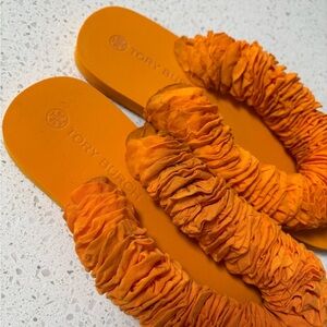 Tory Burch Orange Fringe Slide Sandals