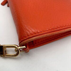 The Tory Burch Orange Leather Britten Smartphone Wristlet combines vibrant style with practicality, featuring luxurious leather and a convenient wristlet design, perfect for carrying your essentials with elegance and ease. (3333-1RB-7.23)