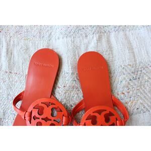 Tory Burch Orange Miller Square Toe Leather Thong Slides Sandals Size 6.5M