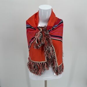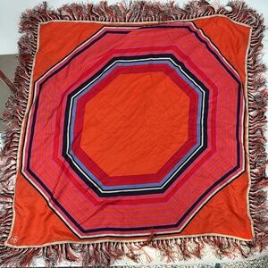 Tory Burch Oversized Silk Fringe Scarf Shawl – Orange Pink Geometric Wrap