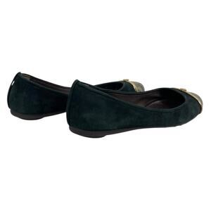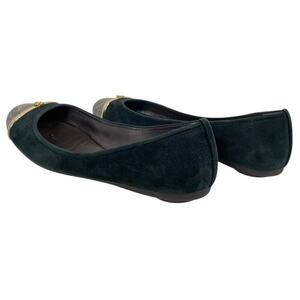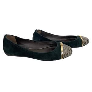 Tory Burch Pacey Driver Ballet Flats Black/Green Suede & Snakeskin Size 8 Classy