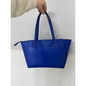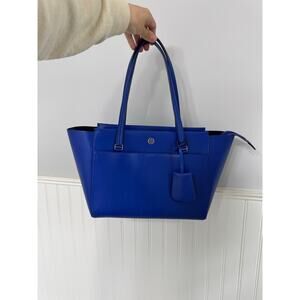 Elevate your everyday style with the Tory Burch Parker Tote in a striking cobalt blue. Crafted from premium leather, this tote features a sleek silhouette complemented by gold-tone hardware. Its spacious interior includes a main zip-top compartment, an interior slip pocket suitable for a tablet or small laptop, and two additional interior wall pockets, ensuring ample space for all your essentials. The exterior slip pocket offers quick access to items on the go.