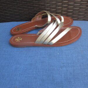 Tory Burch ~ Patos Metallic Leather Thong Sandals ~ 10