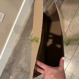 Stylish Tory Burch box with signature pattern. Accented by a green ribbon.