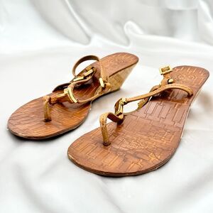 Tory Burch Pauline Tan Leather Demi Wedge Slingback Thong Size 6 M Sandals