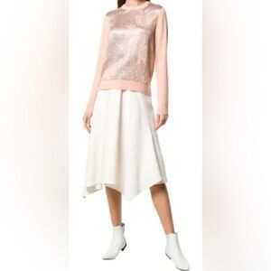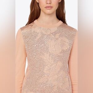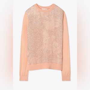 Tory Burch Peach Floral Cloque Front Crew neck Silk Wool Sweater sz Small
