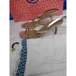 Tory Burch Penelope 65mm Slingback Sandals Womens Size 10 Mirror Metallic 55486