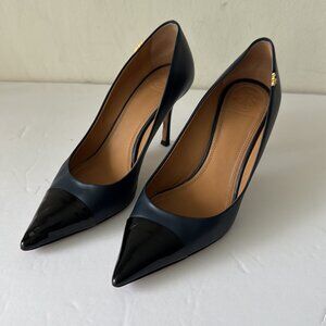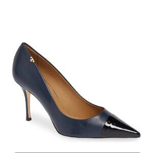 Tory Burch Penelope 85MM Cap Toe Pump Heels Ink Navy Perfect Black