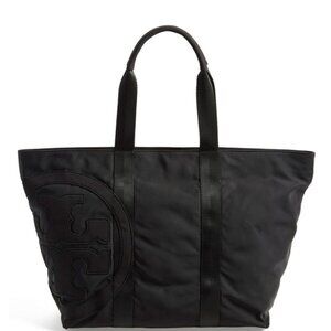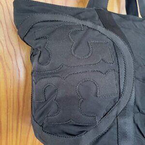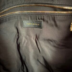Up for purchase is a very gently used Tory Burch Penn medium nylon tote. The tote is in excellent condition, shows no signs of wear or flaws. Pockets include: an open double layered interior pocket on front side of bag, a zippered single interior pocket on back side & an exterior single pocket on the back. Padded double handles/shoulder straps. The measurements are approximately 14.5” x 5.5” x 13" with a top closure length of approximately 19”. The color is black with gold hardware.