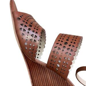Tory Burch Perforated Gladiator 85mm (3.25") Wedge, Cognac color, Size 9