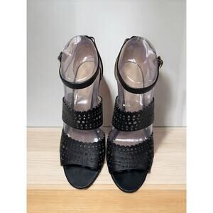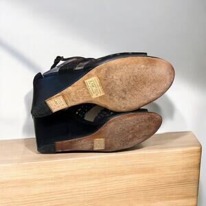 These Tory Perforated Gladiator 85MM Wedge Sandals in size 8.5M are a sophisticated twist on the black wedge sandal! Featuring black leather with double perforated straps and an ankle closure, these are the perfect sandals when you want an elevated look and comfort. If you love Tory Burch quality and style, you need these sandals in your collection!