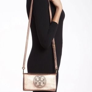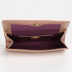Brand new 100% authentic, Rose gold/ royal salmon metallic perforated logo clutch convertible Crossbody