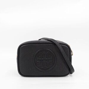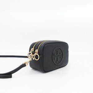 The iconic double-T medallion is stamped at the front of this sized-down bag crafted of richly pebbled leather in classic and Tory's new swoon-worthy colors. Two zip compartments make organizing your small essentials a breeze.