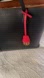 • Red leather logo charm with gold-tone medallion ✨